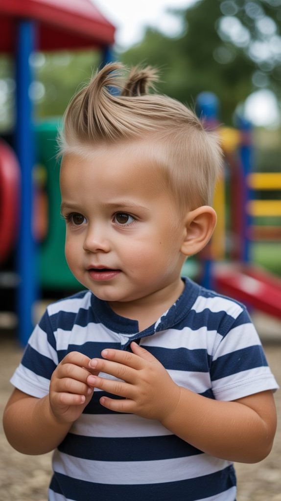 The faux hawk brings an edgy, playful element to toddler haircuts while remaining parent-approved and age-appropriate.