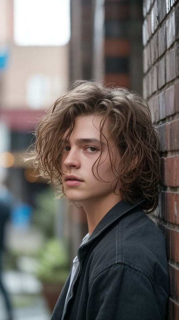 Long wavy hair offers teenage boys incredible versatility and natural texture that can be styled in countless ways.