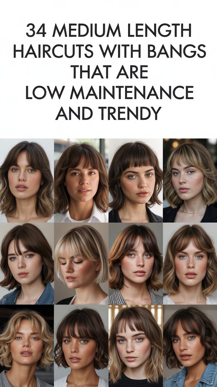 Whether you’re a busy professional, a student juggling multiple responsibilities, or simply someone who wants to look put-together without spending hours in front of the mirror, these 34 medium length haircuts with bangs that are low maintenance and trendy will transform your daily routine while keeping you at the forefront of fashion.