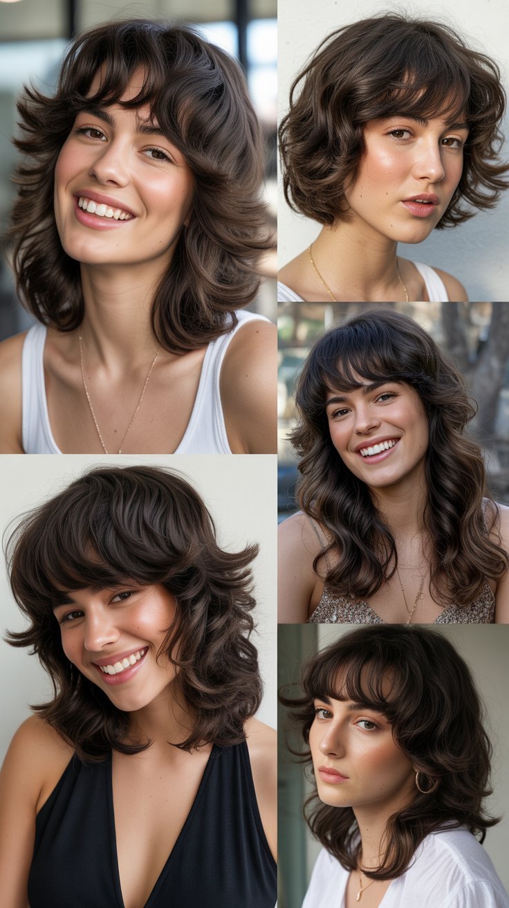 The shoulder-length wolf cut serves as the foundation for all variations and works exceptionally well for thick wavy hair by removing weight while maintaining length.