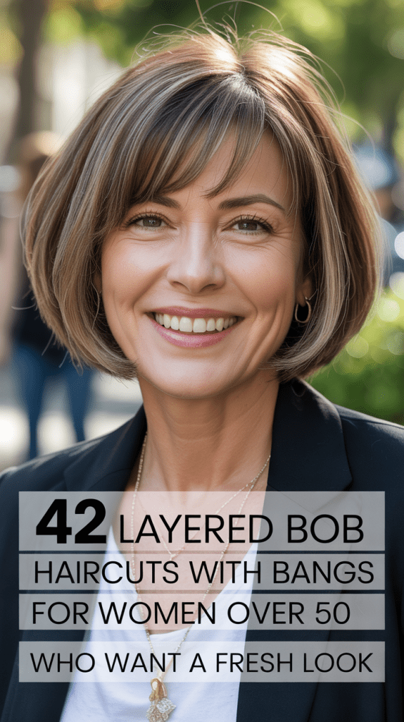 This comprehensive guide to 42 Layered Bob Haircuts with Bangs for Women Over 50 Who Want a Fresh Look will walk you through diverse styling options that flatter mature features, work with changing hair textures, and complement various face shapes.
