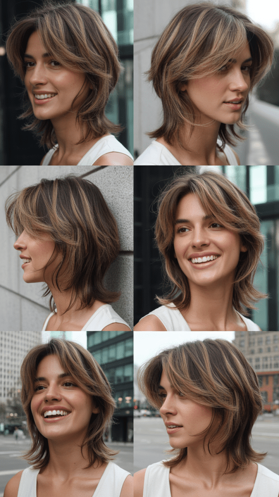 - Balayage or highlights complement the textured layers beautifully
